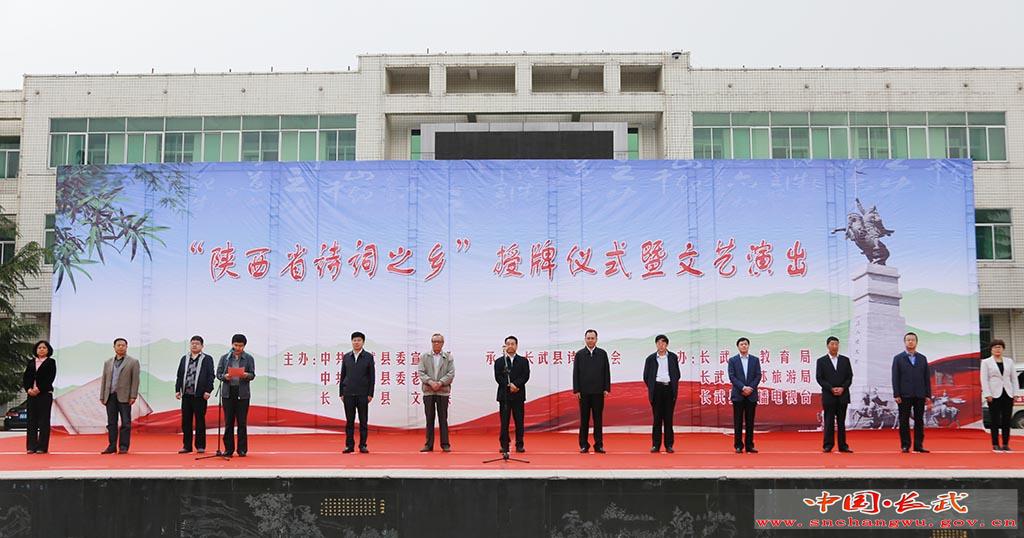 仪式上,省诗词学会常务副会长李耀儒宣读《关于授予长武县“陕西省诗词之乡”称号》批复的文件;市委组织部副部长 、市委老干局局长张兴发,市诗联学会会长赵俊儒向我县获得“陕西省诗词之乡”称号表示祝贺,省诗词学会会长孟建国代表省诗词学会致贺词并授牌。